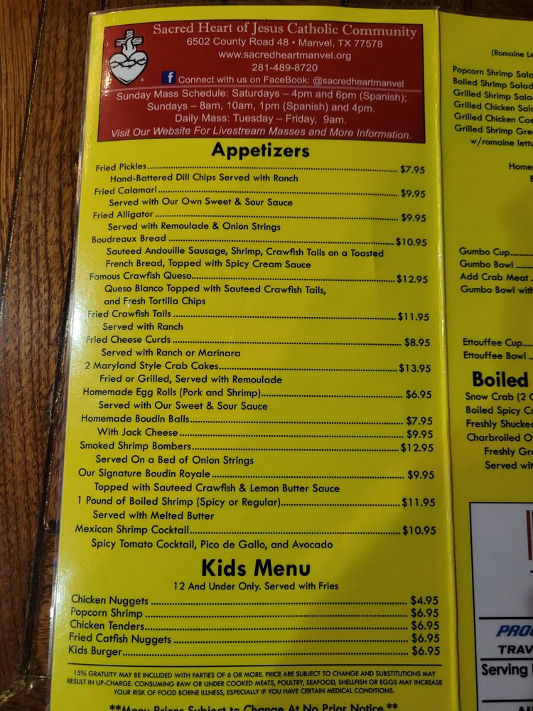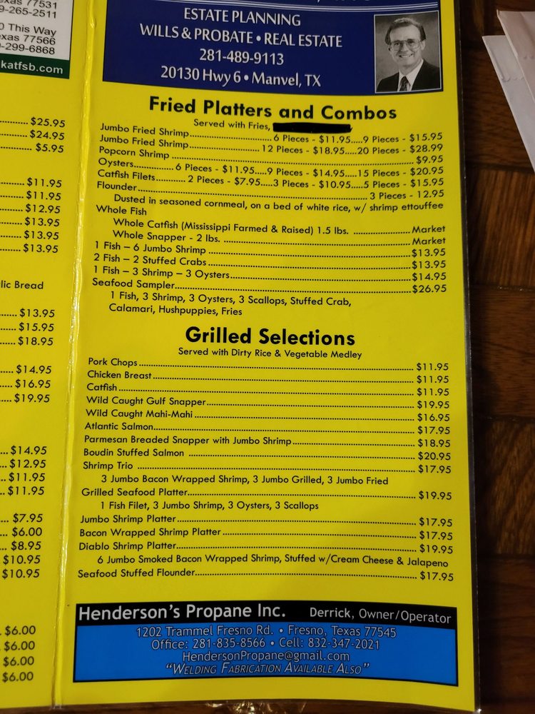 Manvel Seafood & Grill Menu (2025 Update)