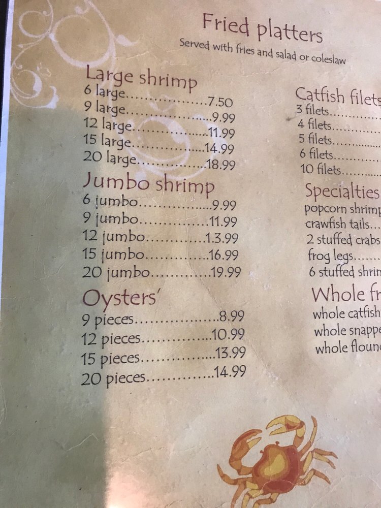 ( jumbo grilled shrimp, jumbo bacon wrapped shrimp, jumbo fried shrimp)